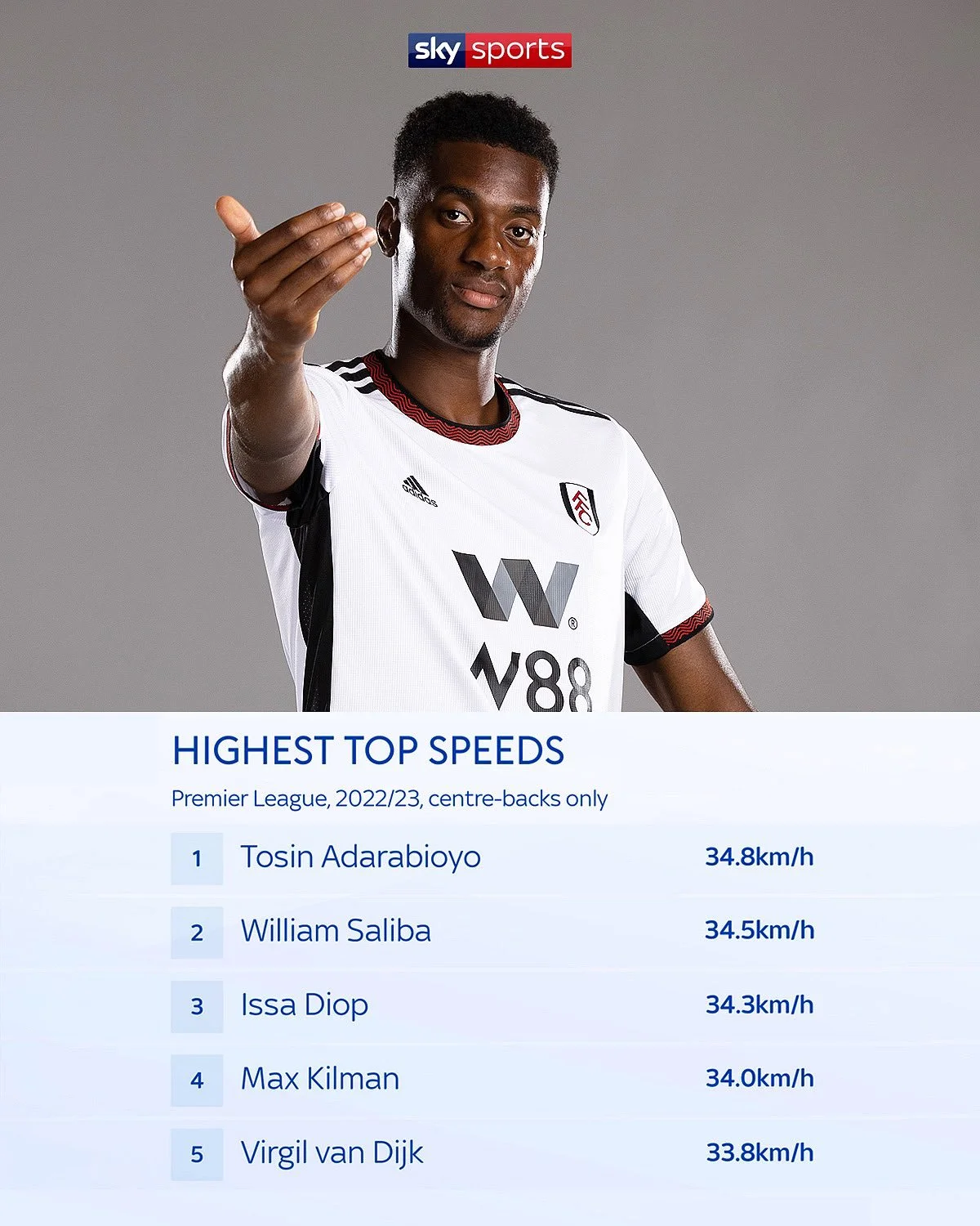 Thanks to Sky Sports, and their statisticians, his top speed so far this season was highlighted alongside other Premier League centre-backs, and of course our man came out on top, clocking the fastest speed so far this season, with a rapid 34.8km/h to his name.